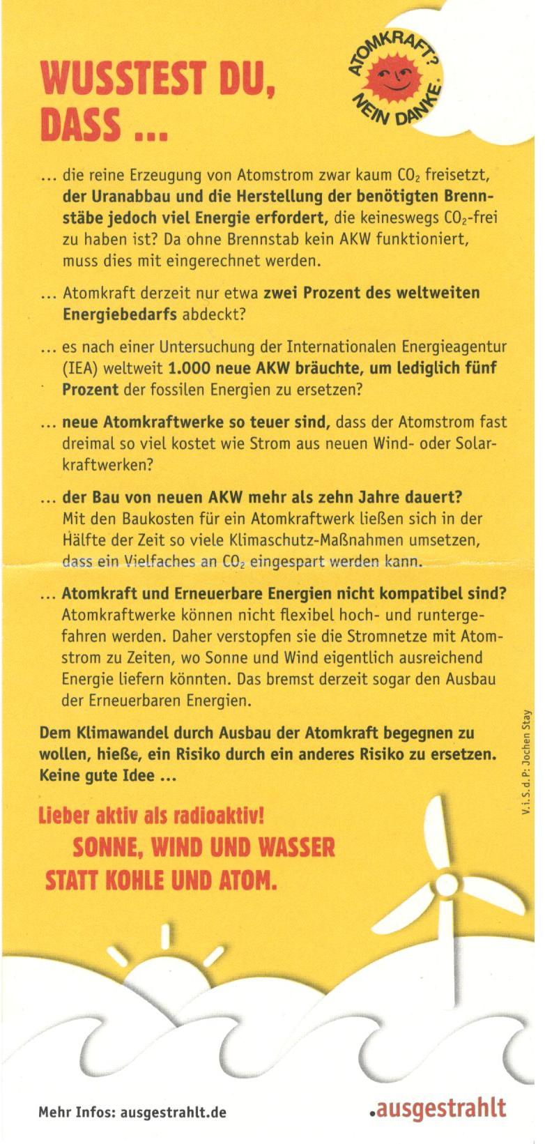 Weitere Argumente sind auf dem Flugblatt von ausgestrahlt aufgelistet. Zum Vergrößern bitte anklicken
