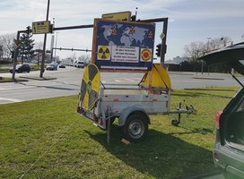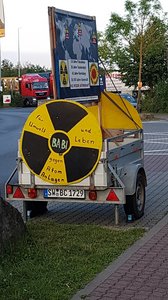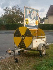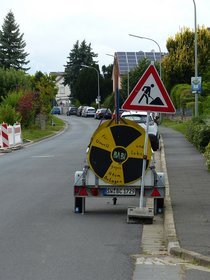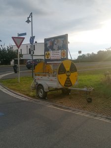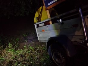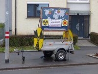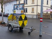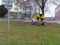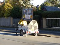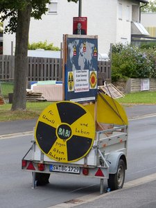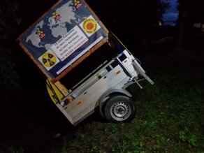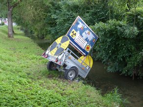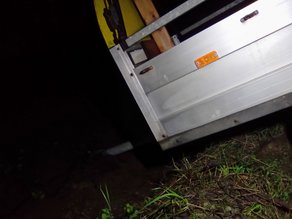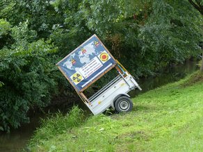 In Geldersheim waren - anscheinend in der Nacht - ein paar böse Buben unterwegs und haben unseren (lt. Polizei korrekt geparkten) Hänger in den Bach geschoben. Dort sieht man ihn aber so schlecht und zuviel Wasser ist ungesund. Deshalb habe ich die Kameraden vom THW-Schweinfurt um Hilfe gebeten. Die haben kurzerhand und kräftig angepackt und den Hänger wieder auf die Strasze gestellt. Ich habe mich bedankt, den Hänger gesäubert und schaue jetzt erst mal, ob ihm das unfreiwillige Bad geschadet hat. Wer etwas über die bösen Buben weisz, darf gerne petzen (St13)