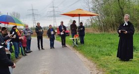 Wir treffen uns am Wegkreuz (Nähe AKW) in Grafenrheinfeld; mit Abstand und Maske
